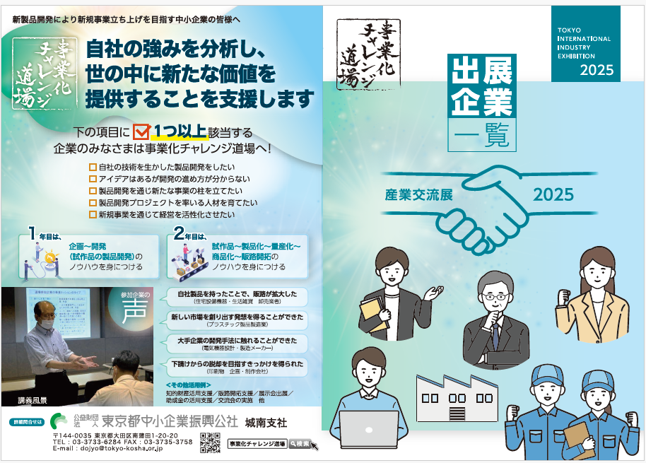 事業化チャレンジ道場で開発中の6製品を、産業交流展2025(公社総合展示ゾーン)にてモニタリング出展します。